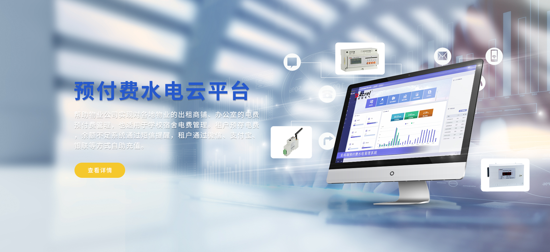 安科瑞提供的解決方案包括Acrel-EIoT能源物聯網云平臺、變電所運維云平臺、安全用電管理云平臺環保用電監管云平臺、智慧消防云平臺、能源管理云平臺、工業企業能源管控平臺、遠程預付費云平臺、餐飲油煙監管云平臺、電動汽車/電瓶車充電樁收費管理云平臺、電力監控/無線測溫系統、電能質量治理系統、電氣火災監控系統、消防設備電源監控系統、防火門監控系統、應急照明和疏散指示系統、智能照明控制系統、醫用隔離電源絕緣監測系統等,幫助用戶實現能源智能化、可視化、精細化管理,提高用能效率和用能安全,為企業節能降耗和實現能源數字化建設提供數據服務。